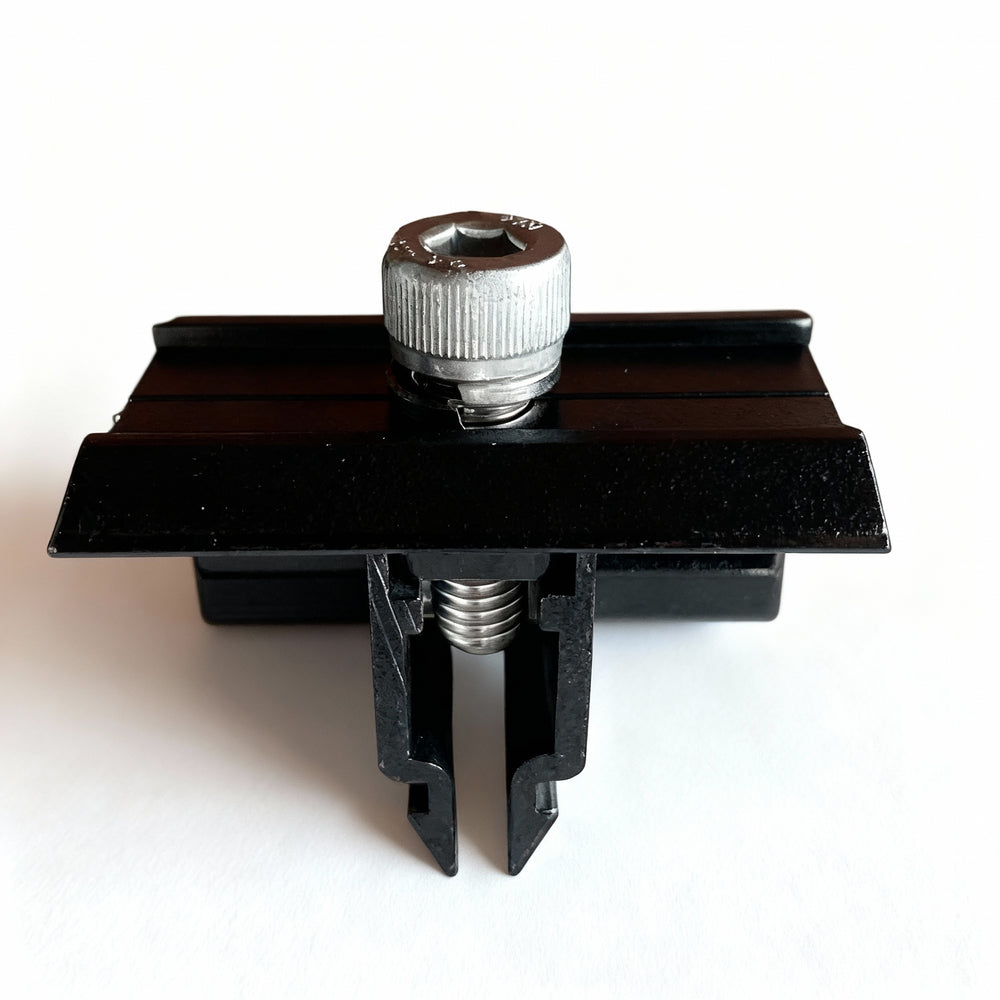 Universal Endklemme mit einfacher Klickfunktion zum Fixieren von Solarmodulen mit Rahmenhöhen 30-35 mm.